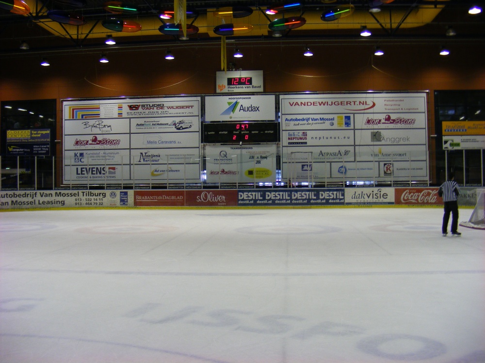 Het leveren en monteren van een aluminium buizenframe en voorzien van full color pvc doeken. Rondom de ijsbaan zijn er full colorstickers met satin laminaat aan gebracht op de boarding.